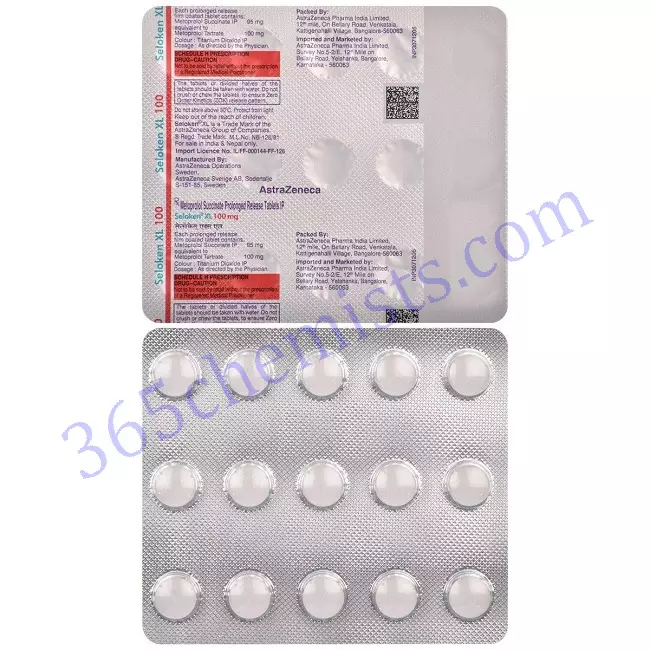 Metoprolol Succinate is the active component in the formulation of the pharmaceutical product known as Seloken XL 100mg Tablet. It is commonly prescribed for the treatment of cardiovascular conditions such as hypertension (high blood pressure), angina (chest pain), and certain heart rhythm disorders. It is a member of the class of drugs known as beta-blockers. The purpose of this detailed description is to provide important information about Seloken XL 100mg Tablet, such as its applications, dosage, adverse effects, and precautions, as well as other pertinent details.