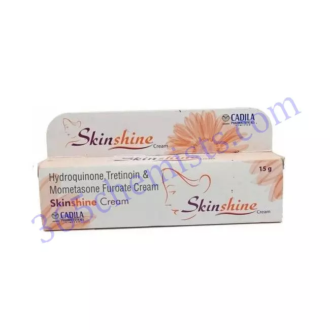 Skinshine Cream is a medicine that consists of Tretinoin, Hydroquinone and Mometasone. It is used for the short-term treatment of moderate to severe melasma (a condition where dark, discoloured patches appear on the skin) of the face. This medicine acts by brightening the skin and decreasing the action of chemicals that cause patches, swelling and irritation of the skin.