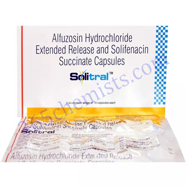 A combination drug called Solitral 10mg/5mg Capsule combines Alfuzosin and Solifenacin to relieve the symptoms of overactive bladder (OAB) and benign prostatic hyperplasia (BPH). It’s crucial to follow your doctor’s instructions when taking medication and to be aware of any possible drug interactions. Consult your doctor for more advice if you notice any unsettling side effects or have concerns about using Solitral 10mg/5mg Capsule. Solitral 10mg/5mg Capsule can help reduce your urinary symptoms and improve your general quality of life when used properly.