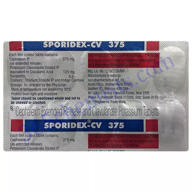 An effective antibiotic medication that is widely used for the treatment of bacterial infections is called Sporidex CV 375mg Tablet. This medication’s active ingredient is cefalexin, and it is contained in the tablet. Because of its bactericidal effect and its capacity to interfere with the production of bacterial cell walls, it is an essential therapeutic option. Patients have the ability to effectively manage bacterial infections and improve their overall health if they adhere to the prescribed dosage and take the necessary precautions. The Sporidex CV 375mg Tablet continues to be an important medication for the treatment of bacterial infections in the healthcare industry. As a result, it contributes to improved patient outcomes and general well-being.