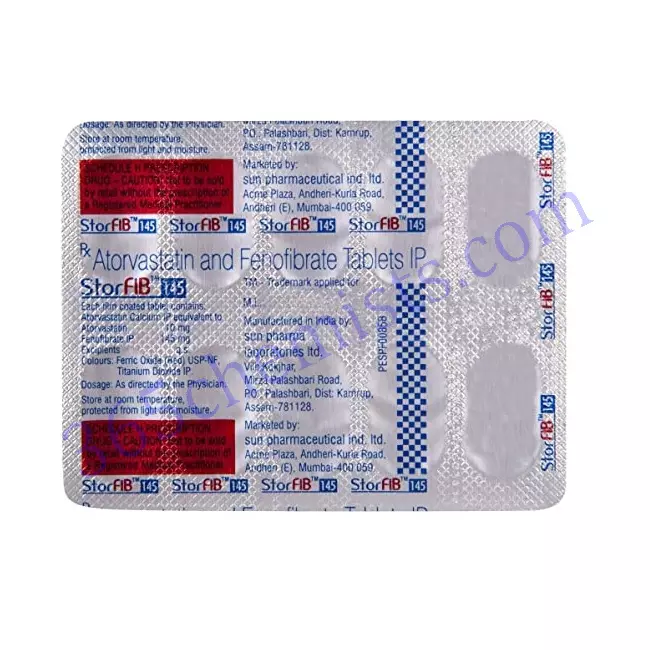 The medication known as Storfib 145mg Tablet (Fenofibrate 145mg) is one that is frequently recommended for the treatment and management of dyslipidemia. Storfib 145mg Tablet helps improve the lipid profile and reduce the risk of cardiovascular diseases by lowering triglyceride levels and raising HDL cholesterol levels. It also helps lower the total cholesterol level. However, it is absolutely necessary to take the medication exactly as directed, to be aware of any potential adverse effects, and to seek personalised guidance from a qualified medical professional. Storfib 145mg Tablet is able to assist individuals in improving their lipid profile while simultaneously lowering the risk of associated complications when these precautions are followed.