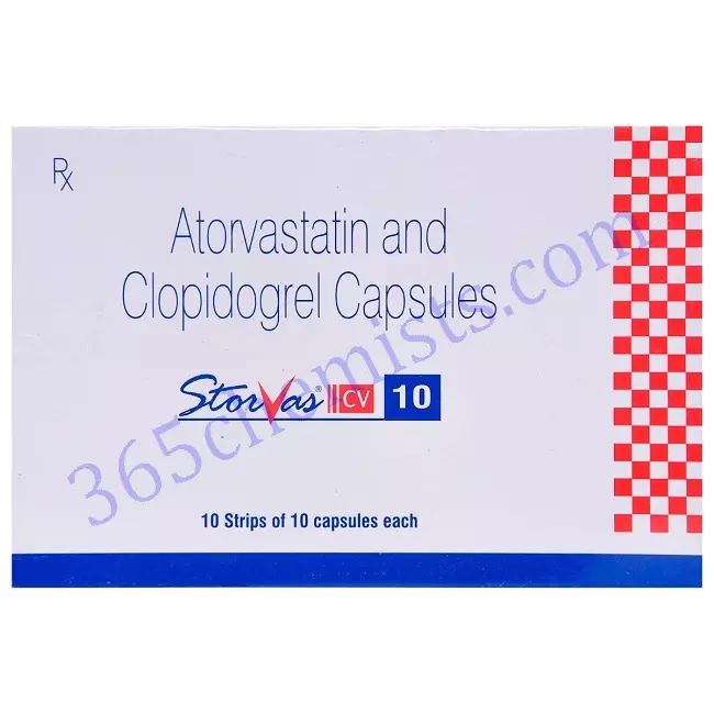 Atorvastatin and clopidogrel are the two active components that can be found in a single capsule of Storvas CV 10mg, which is a combination medication. This overview of Storvas CV 10mg Capsule covers a variety of topics, such as its applications, recommended dosage, potential adverse effects, and safety considerations. It is essential to keep in mind that it is recommended that this medication be taken under the supervision of a qualified medical professional.