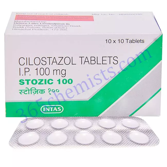 Stozic 100mg Tablet is a pharmaceutical formulation that utilises Cilostazol as its active ingredient. This tablet comes in a dosage strength of 100 milligrammes. It is available in a strength of 100 mg, which provides a standardised dose for clinical applications of the drug.