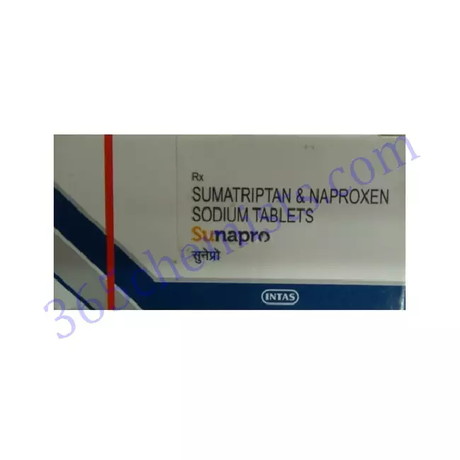 Sunapro Tablet is a medication that provides comprehensive relief for migraine symptoms by combining two active ingredients, Sumatriptan and Naproxen. Triptans are the name of a class of medications that include sumatriptan. Triptans are effective in treating migraines because they constrict blood vessels and reduce inflammation in the brain. Pain can be alleviated and inflammation can be reduced with the help of the nonsteroidal anti-inflammatory drug (NSAID) naproxen. A synergistic effect can be achieved in the management of migraines by combining these two components, which are found in Sunapro Tablet.