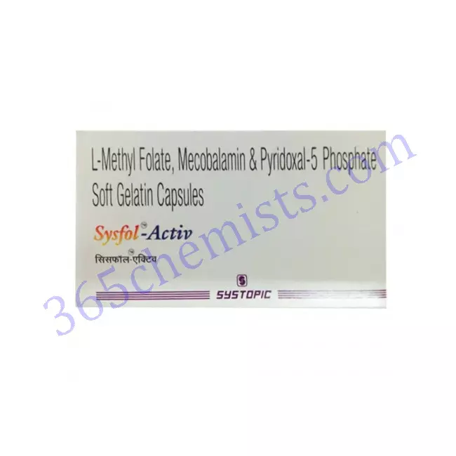 The Sysfol Activ Capsule provides comprehensive support for nerve health, cognitive function, and emotional well-being. It is enriched with the power of L-methyl folate and Mecobalamin. Your levels of energy and overall vitality can receive a natural boost from this potent supplement, which contains essential nutrients that play a crucial role in a variety of bodily processes. Include the Sysfol Activ Capsule in your regular routine to experience improved well-being and a healthier version of yourself. As you start out on the path to attaining optimal health and vitality, put your faith in the fact that this supplement is both effective and risk-free.