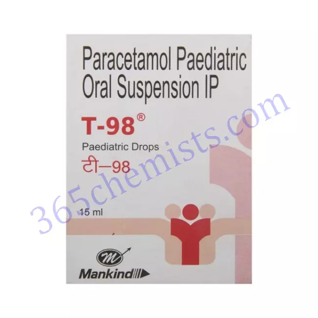 T-98 Paediatric Drop contain Paracetamol 100mg per 15ml. They are designed for use in children and offer a practical solution for the treatment of discomfort as well as fever in young patients. Children who are unable to swallow tablets or capsules may benefit from the precise dosing offered by T-98 Paediatric Drop because of their liquid form, which makes them simple to administer.