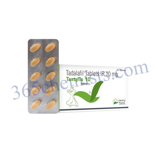 Tastylia 10mg Tablet(Tadalafil) is a scientifically formulated medication that treats erectile dysfunction in men. Its active ingredient works by enhancing blood flow to the penile region, helping men achieve and maintain a strong erection during sexual activity. This tablet is preferred for its fast onset and long-lasting effectiveness, ensuring satisfaction for both partners.