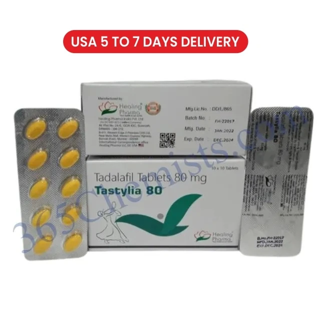 Men with erectile dysfunction (ED) can be treated with Tastylia 80mg Tablets. Its main component, Tadalafil, comes from a group of medications known as phosphodiesterase type 5 (PDE5) inhibitors. With improved blood flow to the penis brought on by Tastylia 80mg Tablet, sexual excitement is heightened, and it becomes easier to get and keep an erection while having sex.