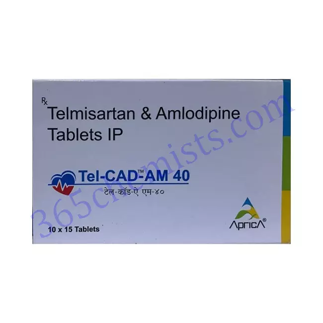 Telcad AM (5/40 mg) Tablet is a combination of Amlodipine and Telmisartan. It is an anti-hypertensive medicine used for the treatment of high blood pressure. This medicine works by relaxing the blood vessels, making the blood flow easily, thus lowering blood pressure. This will reduce your risk of having a heart attack or a stroke by making it easier for your heart to pump blood around your body.