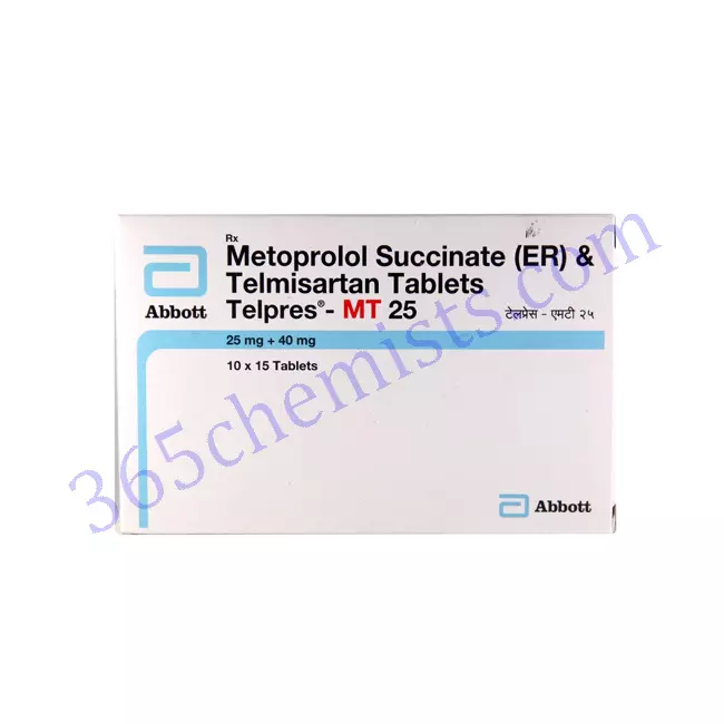 Telpres-MT 25 Tablet contains – Telmisartan, Metoprolol