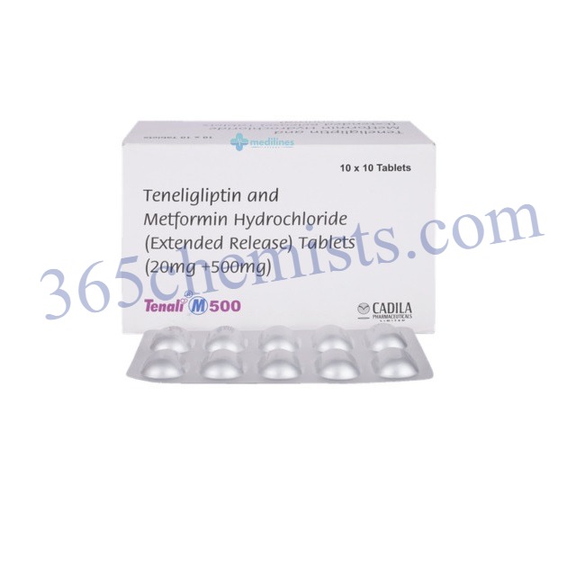 Metformin is the primary component of Tenali M 500mg Tablet, which makes it an effective treatment for managing type 2 diabetes mellitus. This specialized medication was carefully developed. It does this by addressing issues with glucose synthesis in the liver, insulin sensitivity, and glucose uptake, all of which lead to more balanced management of blood sugar. Individuals who have type 2 diabetes have the ability to effectively control their illness and improve their quality of life when they combine medical advice with a healthy lifestyle that includes regular physical exercise and a diet that is balanced in terms of macronutrients and caloric intake.