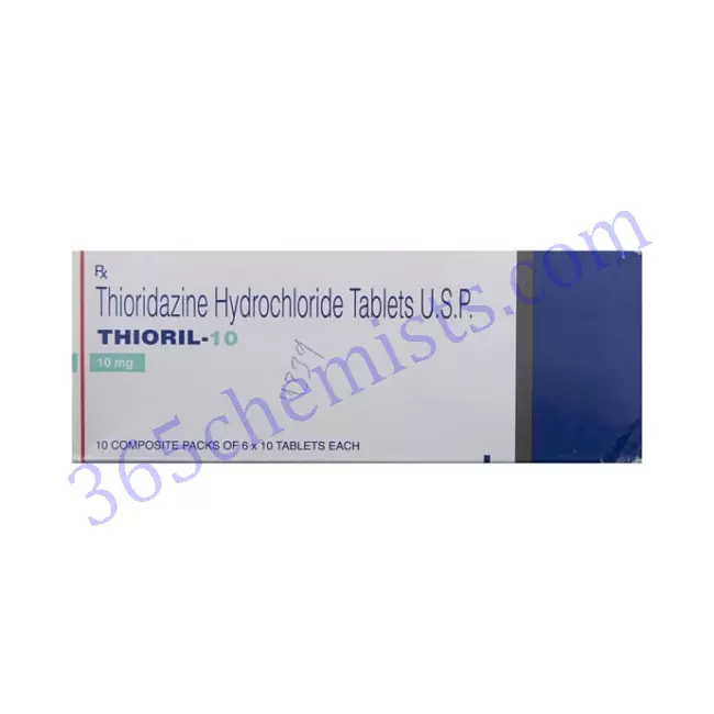 Thioril 10 mg Tablet, which contains Thioridazine 10mg, is a valuable medication used in the management of psychiatric disorders, specifically schizophrenia and severe behavioural problems. This tablet contains Thioridazine 10mg. It achieves this by modulating neurotransmitters within the brain, which in turn helps alleviate symptoms associated with the aforementioned conditions. It is essential to take this medication exactly as directed, including strictly adhering to the dosage, as well as all of the precautions and warnings that come with it. The utilisation of Thioril 10mg Tablet in a manner that is both safe and effective necessitates on-going monitoring in conjunction with communication with a qualified medical professional.