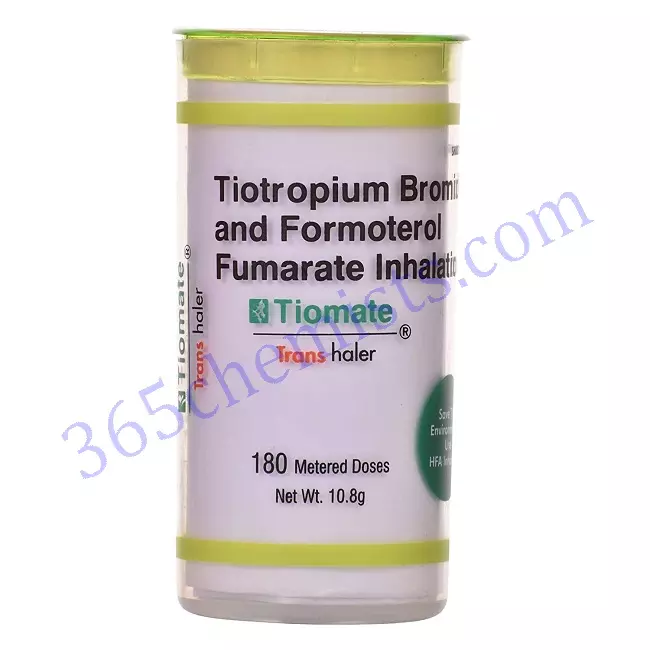 Tiomate Transhaler is a combination medicine used to relieve symptoms such as wheezing, shortness of breath, chest tightness, breathing difficulties, coughing, etc. associated with chronic obstructive pulmonary disease (COPD). This medicine is not recommended for use in patients less than 18 years of age.