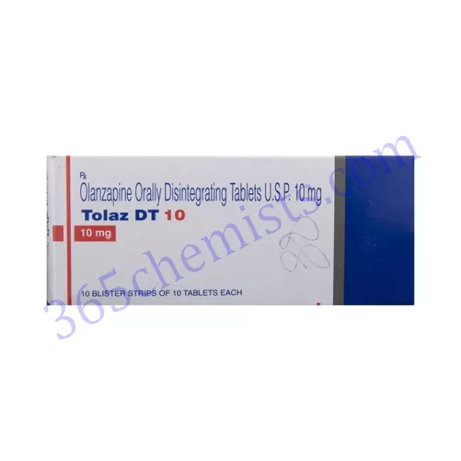 Olanzapine serves as the active component in each Tolaz DT 10mg Tablet, which has a dosage of 10 milligrammes. Other inactive ingredients that are essential to the tablet’s formulation and manufacturing process might be included in the tablet as well.