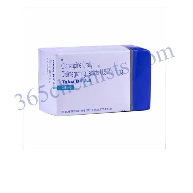 Olanzapine is the primary component of the pharmaceutical product known as Tolaz DT 2.5mg Tablet, which comes in a dosage form of 2.5 milligrammes. The treatment of psychotic disorders is the primary application for this atypical antipsychotic medication, which is also the class to which it belongs. To help alleviate symptoms associated with these disorders and promote mental well-being, the Tolaz DT 2.5mg Tablet was developed.
