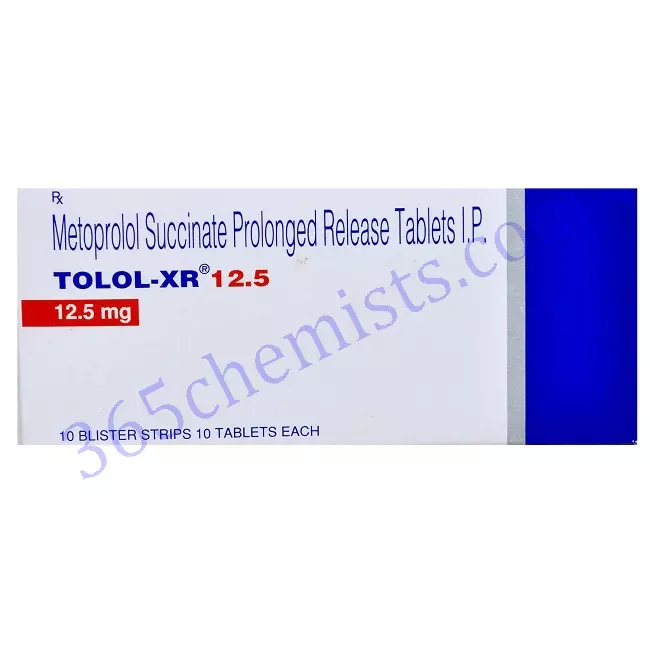 Tolol XR 12.5mg Tablet contains metoprolol succinate, a beta-blocker that works by slowing down the heart rate and reducing the workload on the heart. Doctors prescribe Tolol XR 12.5 mg Tablet for: