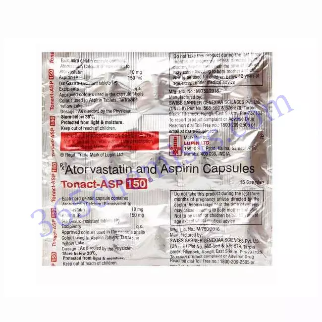 Tonact ASP 150 Capsule (Atorvastatin 10mg/Aspirin 150mg)