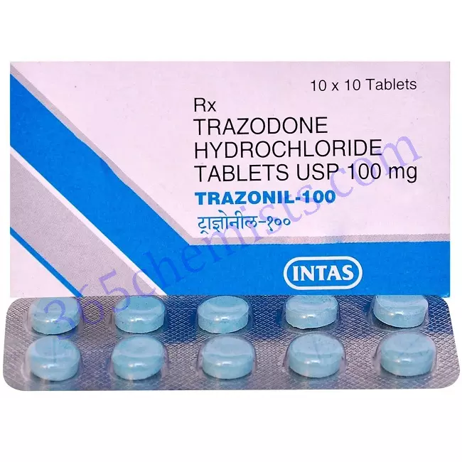 The antidepressant Trazodone 100 is the active ingredient in the medication known as Trazonil 100mg Tablet. This medication is prescribed primarily for the treatment of depression as well as certain anxiety disorders. It is classified as a member of the group of drugs called serotonin modulators, which exert their effects by modifying the levels of serotonin in the brain. Serotonin is a neurotransmitter that helps regulate mood and is found in the brain. Tablets of 100 milligrammes of trazodone are offered for purchase, and users are instructed to swallow them whole.