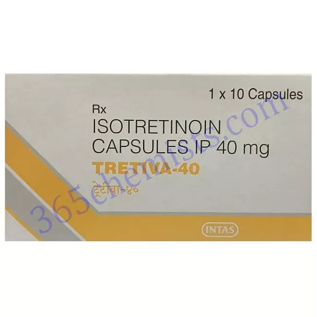 Tretiva 40mg Capsule is a medicine that contains isotretinoin. It is a naturally occurring derivative of vitamin A. This medicine is used for the treatment of a severe form of acne called nodular acne characterized by large, inflamed, painful acne lesions deep under the skin. It acts on skin glands to reduce the production of a substance called sebum that can cause acne or pimples. It also has an anti-inflammatory action which decreases the redness and swelling associated with acne.