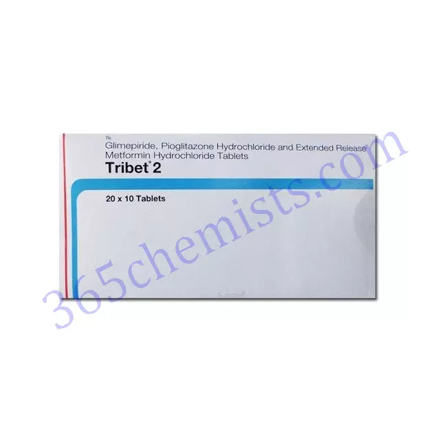 Patients who have been diagnosed with diabetes mellitus type 2 are candidates for the drug known as Tribet 2 Tablet. Glimepiride, metformin, and pioglitazone are the three active components that are combined in this product. This combination provides an all-encompassing method for glycemic control and lowering blood sugar levels. In the following paragraphs, we will discuss the Tribet 2 Tablet in great length, including its applications, the appropriate dosage, and any potential adverse effects.