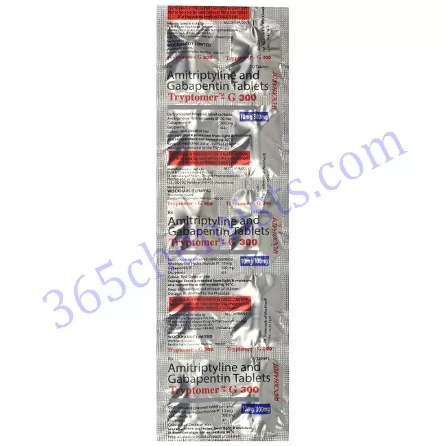 Tryptomer G 300/10mg Tablet is an oral medication that provides effective pain relief by combining two active ingredients, namely Gabapentin and Amitriptyline. This medication is taken by mouth. This medication is frequently recommended for the management of neuropathic pain, which is a form of pain that can be brought on by damage to the nervous system or dysfunction in the nervous system. Individuals who are afflicted with neuropathic pain may benefit from taking the Tryptomer G 300/10mg Tablet because it makes use of the therapeutic qualities of both gabapentin and amitriptyline. As a result, these individuals experience enhanced pain relief and an improvement in their quality of life. In this piece, we will investigate the ingredients that make up Tryptomer G 300/10mg Tablet, as well as its mode of action, therapeutic applications, recommended dosage, and potential adverse effects.
