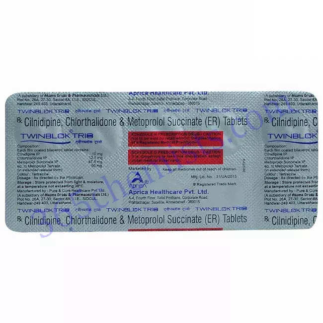 Home Heart & Blood Pressure Twinblok Trio Tablet (Chlorthalidone 12.5mg/Metoprolol Succinate 50mg/Cilnidipine 10mg)