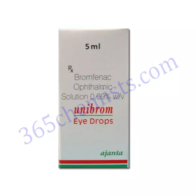 Ocular inflammation can be effectively treated with Unibrom Eye Drop (Bromfenac 0.09%), which provides relief for symptoms such as pain, redness, and swelling. Unibrom Eye Drop, which contains Bromfenac as its active ingredient, combats inflammation and offers almost instant relief. People looking for treatment from ocular irritation may find that this product is an appropriate option because to its user-friendly packaging and administration process. Regain control over your eye health with the help of the Unibrom Eye Drop, and treat yourself to the level of comfort and clarity you deserve.
