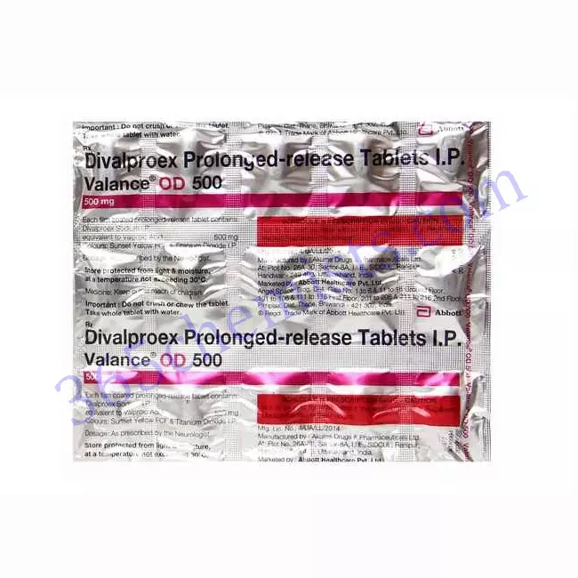 Divalproex 500 is the active component in the tablet form of the medication known as Valance OD 500mg, which is administered orally. The treatment of epilepsy as well as mood disorders frequently calls for the use of this particular medication. Epilepsy is a neurological condition that is characterised by recurrent seizures, whereas mood disorders encompass conditions such as bipolar disorder and migraines. Epilepsy is a condition that affects the brain. Because of the therapeutic properties it possesses, the Valance OD 500mg Tablet provides effective control over these conditions. In the following paragraphs, we will discuss the chemical make-up, mechanism of action, therapeutic applications, recommended dosage, and possible adverse effects of the Valance OD 500mg Tablet.