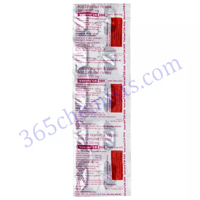 The Valrate CR 500mg Tablet is an effective medication for the management of epilepsy. Its active ingredients are Sodium Valproate 333mg and Valproic Acid 145mg, and it comes in the form of a tablet. It accomplishes this by elevating GABA levels in the brain, which, in turn, effectively controls epileptic seizures and improves overall quality of life for epileptic patients. Utilisation of the Valrate CR 500mg Tablet in a manner that is both safe and effective requires strict adherence to the recommended dosage, awareness of any possible adverse effects, and ongoing communication with a qualified medical professional. Individuals can experience better seizure control and overall wellbeing if they are provided with the appropriate medical guidance.