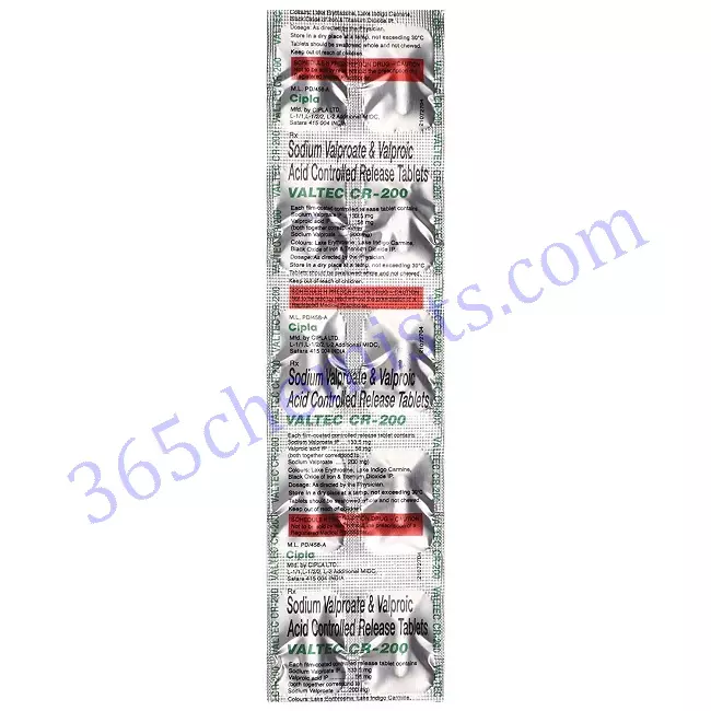A useful medication for the treatment of epilepsy is the Valtec CR 200mg Tablet, which contains a total of 133 milligrammes of sodium valproate and 58 milligrammes of valproic acid as its active ingredients. It accomplishes this by elevating GABA levels in the brain, which, in turn, effectively controls epileptic seizures and improves overall quality of life for epileptic patients. Utilisation of the Valtec CR 200mg Tablet in a manner that is both safe and effective requires strict adherence to the recommended dosage, awareness of any possible adverse effects, and consistent follow-up with a qualified medical professional. Individuals can experience better seizure control and overall wellbeing if they are provided with the appropriate medical guidance.