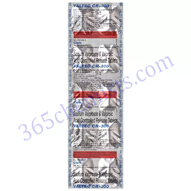 The Valtec CR 300mg Tablet has Sodium Valproate in the amount of 200 mg and Valproic Acid in the amount of 87 mg. Anticonvulsant medications are those that contain these active ingredients as their primary purpose. In order for them to exert their effect, they raise the levels of GABA, which is an inhibitory neurotransmitter found in the brain. Those who have epilepsy can benefit from a reduction in the frequency and severity of their seizures if they take a medication called Valtec CR 300mg Tablet. This medication works by boosting the inhibitory effects of GABA.