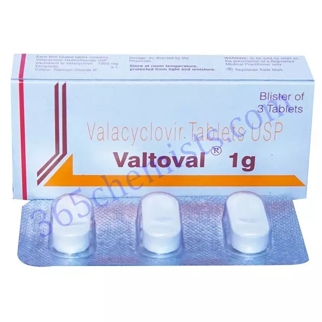 Valtoval 1g Tablet 3’s contains valacyclovir, which is an antiviral medication. Valtoval 1g Tablet 3’s is used in treating viral infection by preventing the multiplication of viruses in human cells. As a result, this stops the proliferation of viruses and produces new viruses, slowly leading to the viral infection clearing up.