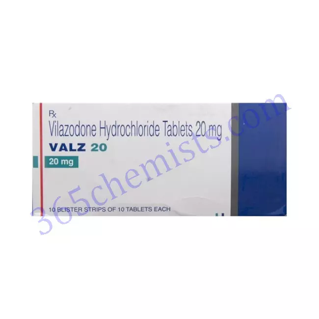 An antidepressant that belongs to the selective serotonin reuptake inhibitor (SSRI) and partial serotonin agonist classes, vilazodone hydrochloride is the active ingredient in the medication known as Valz 20mg Tablet. The treatment of major depressive disorder (MDD), which is the most common application of this medication, is its primary focus. Serotonin is a neurotransmitter in the brain that is responsible for regulating mood. Valz works by increasing the levels of serotonin. This in-depth guide will provide you with essential information about Valz 20mg Tablet, including its applications, recommended dosage, potential adverse effects, and safety considerations.