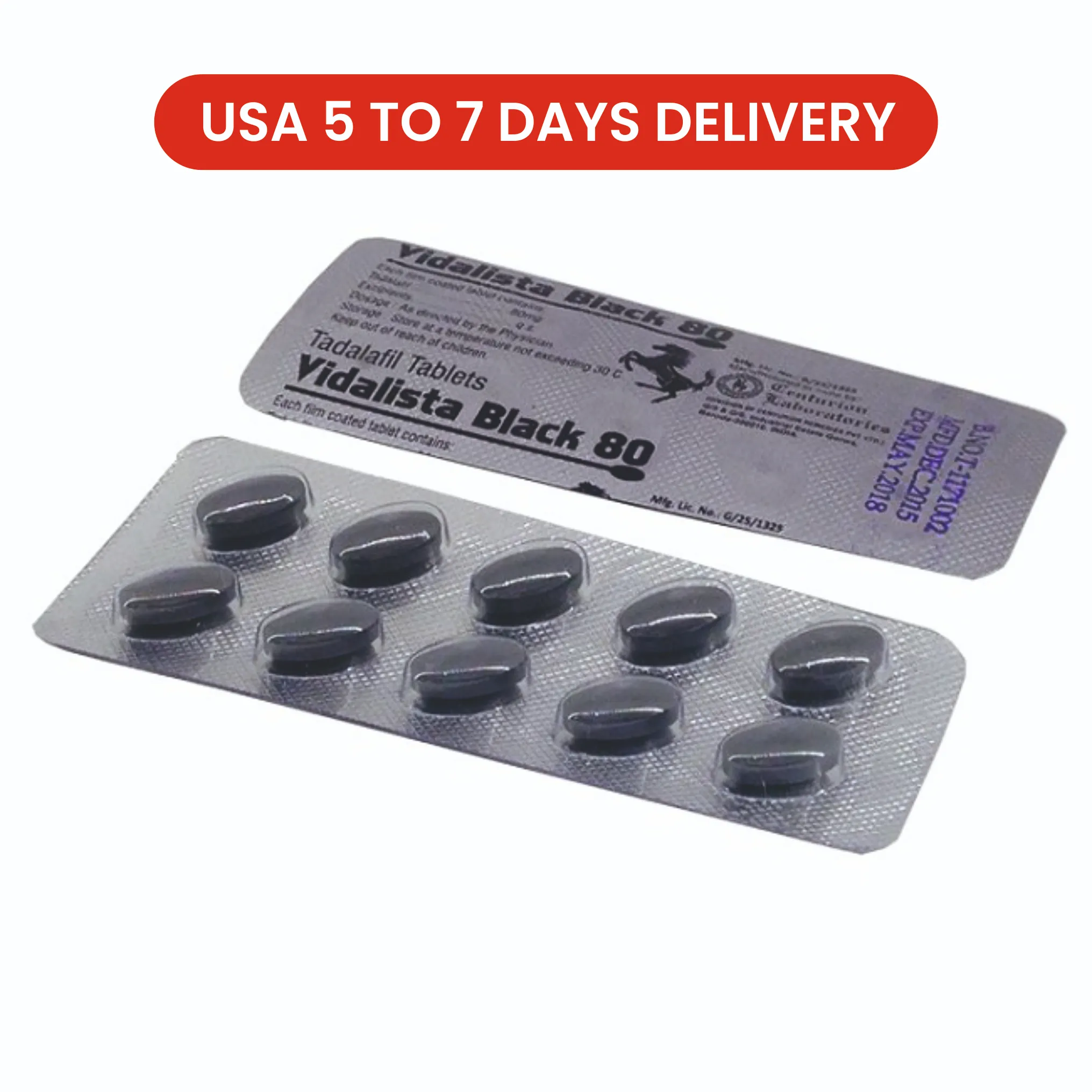 Vidalista Black 80 mg (Generic Tadalafil) is the active element in Cialis and is a type of PDE5 inhibitor that helps men with ED get and keep erections, improving s*xual function with harder and longer-lasting erections.