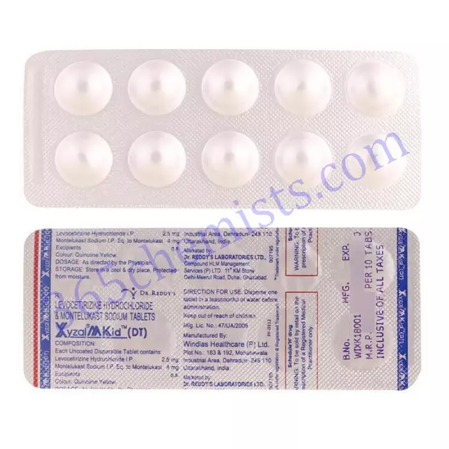 Home Allergy Xyzal M Kid(DT) Tablet (Levocetirizine 2.5mg/Montelukast 4mg)