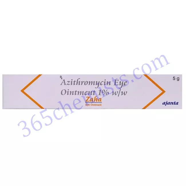 Zaha Eye Ointment is a topical medication that is used for the treatment of ocular infections. Its active component is azithromycin, and it contains this component in its formulation. Because it works by stopping the production of proteins in bacteria, it is an excellent option for treating bacterial eye infections because of its mechanism of action. Patients can effectively treat ocular infections and promote eye health by adhering to the usage instructions, taking the necessary precautions, and communicating with their healthcare provider about any concerns or adverse effects they experience. The use of Zaha Eye Ointment continues to be recommended by healthcare professionals as an effective option for the treatment of bacterial eye infections, which contributes to improved patient outcomes and overall well-being.