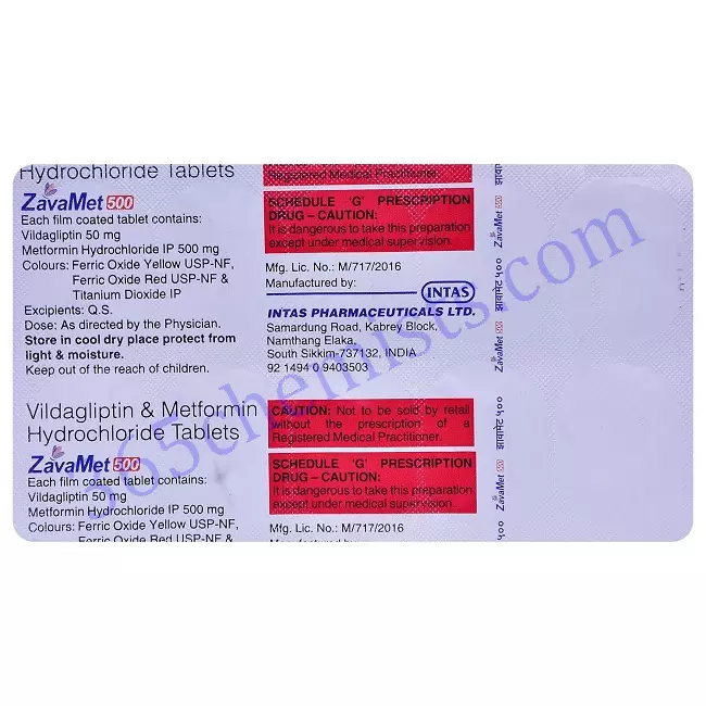 Zavamet 500 Tablet (Metformin 500mg/Vildagliptin 50mg): A Comprehensive Overview