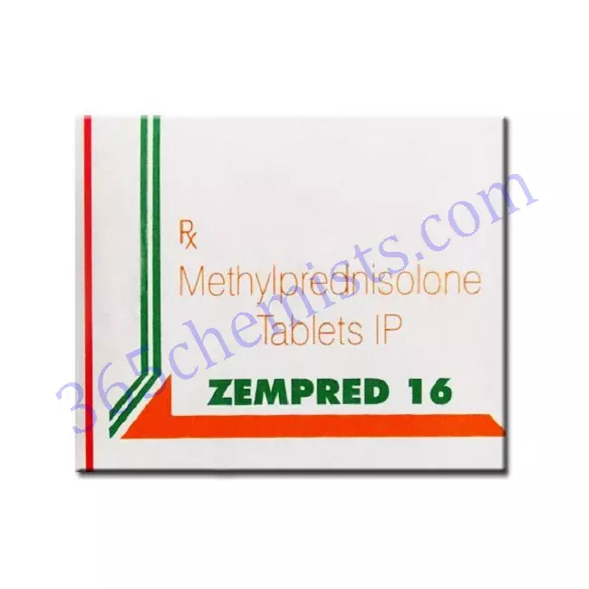 ZEMPRED 16MG contains Methylprednisolone which is a corticosteroid medicine. It is used to treat various inflammatory and allergic conditions affecting the adrenal glands (Ex. adrenocortical insufficiency), bones and joints (Ex. arthritis), collagen (Ex. systemic lupus erythematosus), skin (Ex. psoriasis and dermatitis), lungs (Ex. asthma, pulmonary tuberculosis), eyes (Ex. uveitis, keratitis, neuritis, iritis), blood and lymph (Ex. anemia, leukemia and lymphomas), bowel (Ex. Crohn’s disease and ulcerative colitis), brain (Ex. tuberculous meningitis) and muscles (Ex. dermatomyositis and polymyositis).