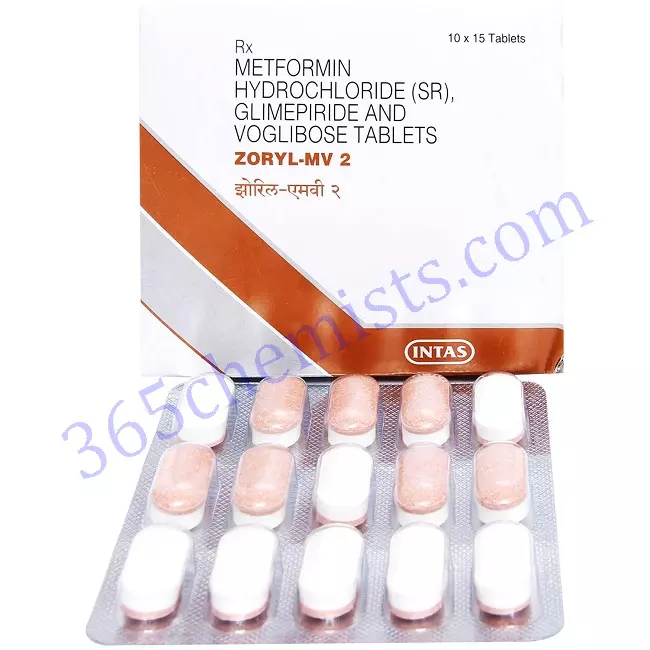 Zoryl-MV 2 Tablet SR belongs to a category of medicines known as anti-diabetic drugs. It is a combination of medicines used to treat type 2 diabetes mellitus in adults. It helps control blood sugar levels in people with diabetes.