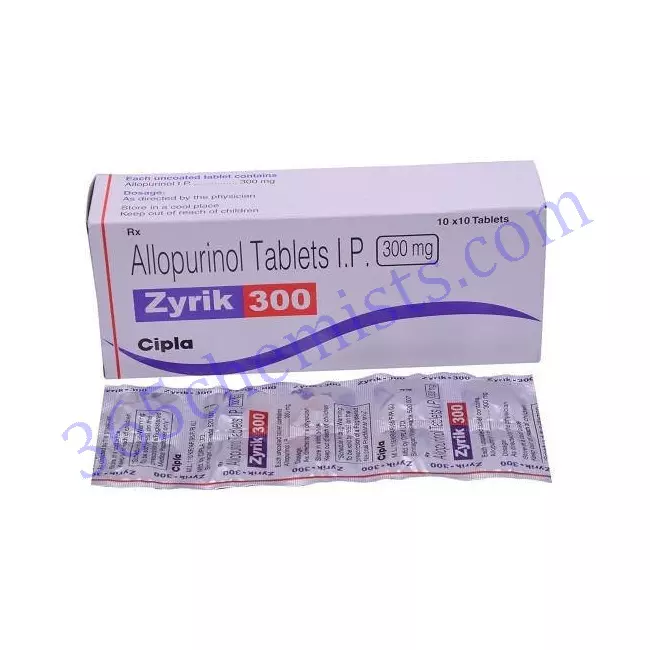 The active component of the Zyrik 300mg Tablet is allopurinol, which is a medication that is commonly used for the management of hyperuricemia (high levels of uric acid) and gout. This detailed explanation of Zyrik 300mg Tablet is intended to supply the reader with an exhaustive knowledge of the product, including its applications, recommended dosage, potential side effects, and other relevant information.